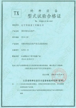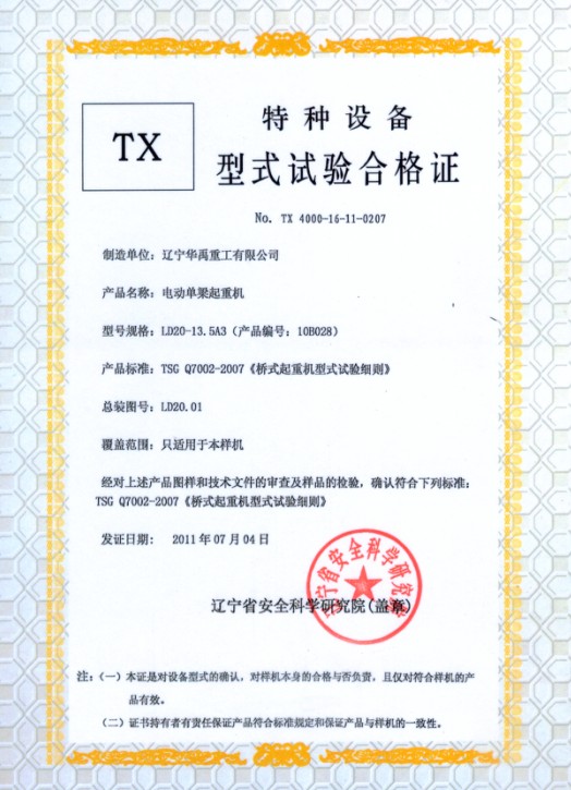 LDP电动单梁型式试验合格证